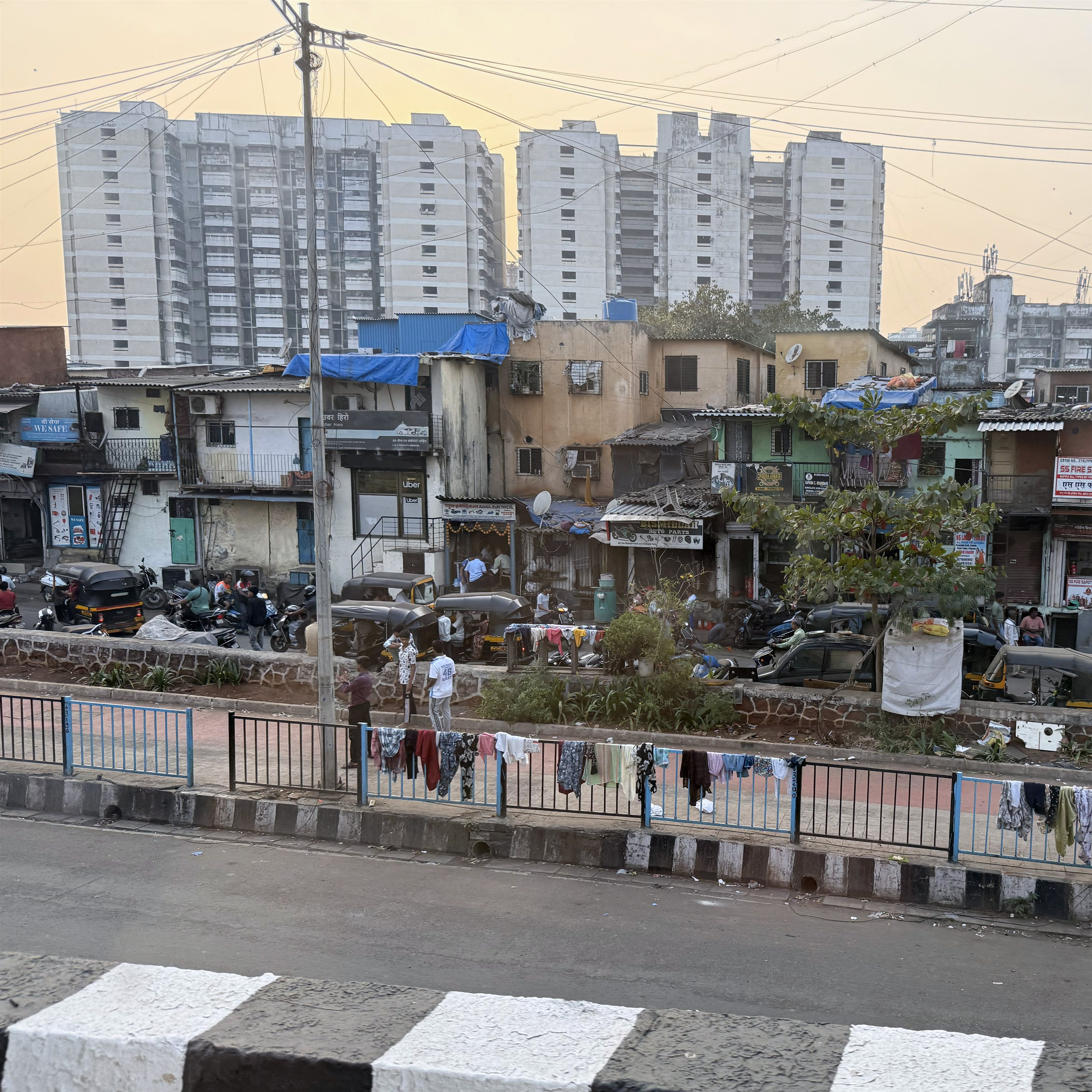 高層ビルの真下には、ブルーシートに置き石をしているだけの屋根の下で暮らす人々の家が広がる様子は、なんとも現実感の伴わない光景でした。